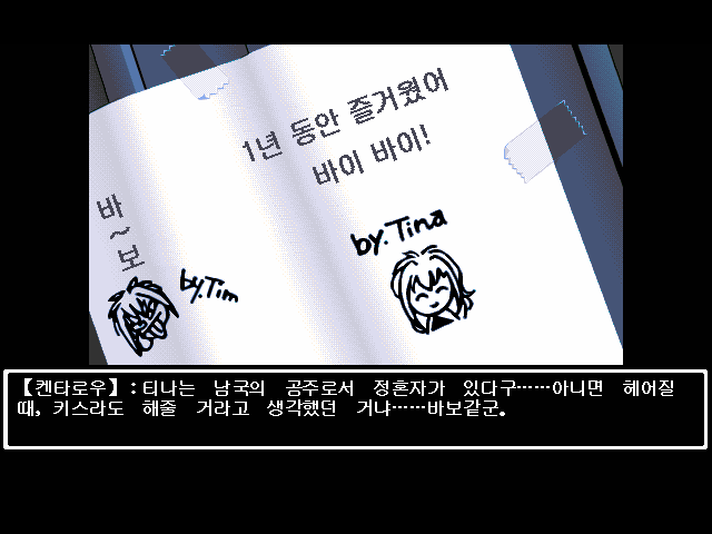 티나에 대한 또 다른 해석은 없을까? 티나는 주인공의 존재 의의에 대해 질문을 던진다. 내가 즐겼던 학창 시절이 사실은 거대한 실험실의 통제된 환경이었다면? 주인공이 여성을 주체적으로 만난 것이 아니라, 감시와 시험의 대상이었다면? 언뜻 납득이 가는 이유다. <하급생>은 복합적인 감정을 플레이어에게 선사한 게임이었으니까. 이 역시 모든 사실을 명쾌하게 설명해주진 않는다. 어쩌면 당대 연애 게임이 가진 고정관념을 깨보고 싶었던 걸지도 모른다. 결국 추론은 추론일 뿐, 결국은 디테일의 문제다. 의도가 어찌됐든 티나의 묘사가 부족한 건 사실이었으니.