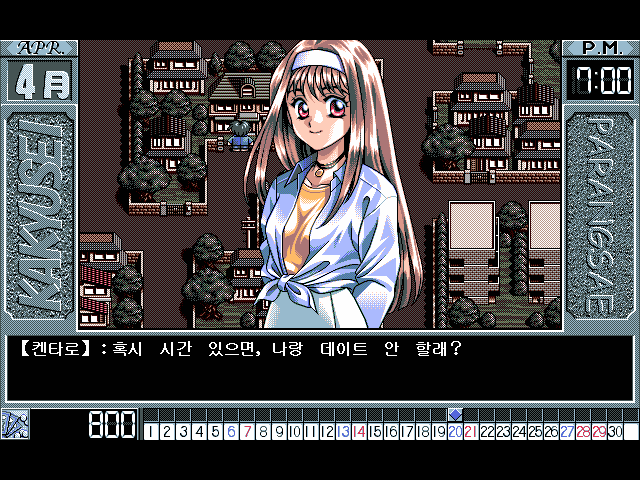 평일에는 학원에 다니고, 주말에는 자유 시간이 주어진다. 남는 시간에 돈을 벌 것인가, 마을에서 탐색할 것인가, 데이트를 할 것인가는 플레이어의 몫이다. 노력하지 않는 이에게, 여자친구가 어디 하늘에서 떨어진단 말인가.