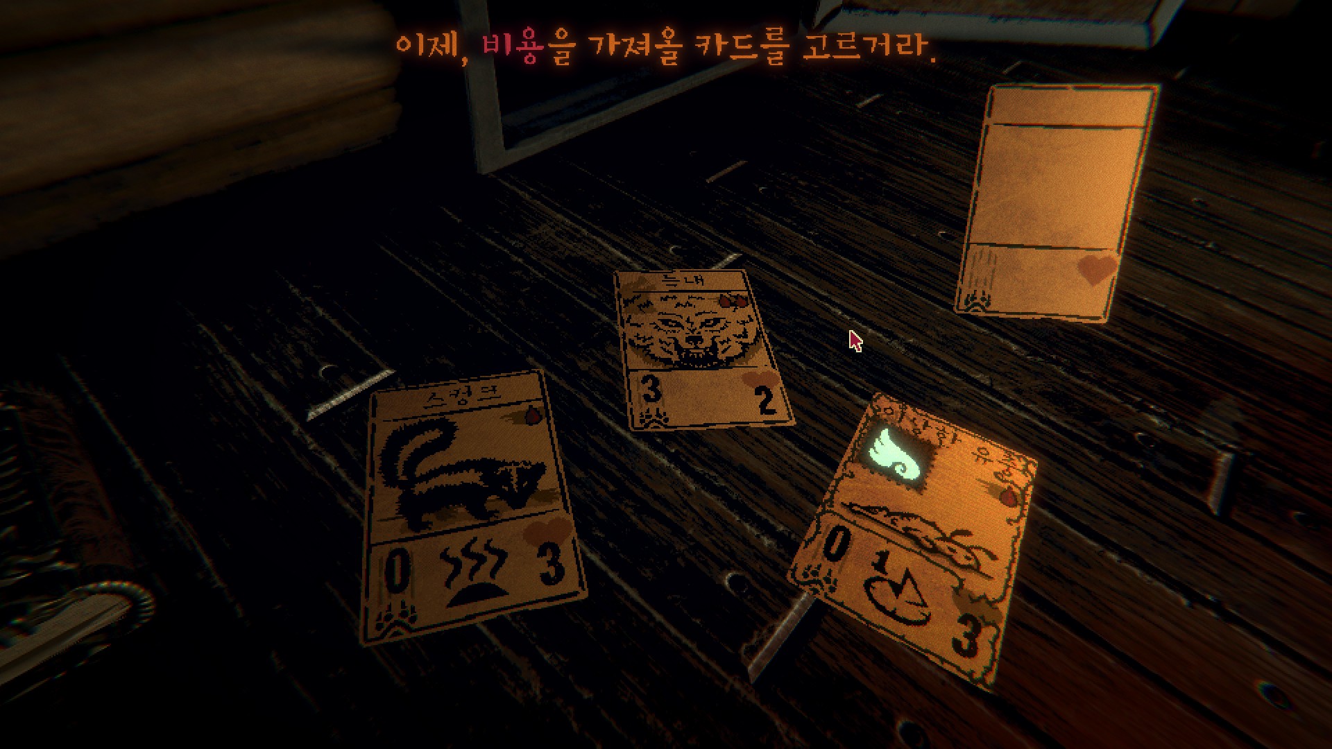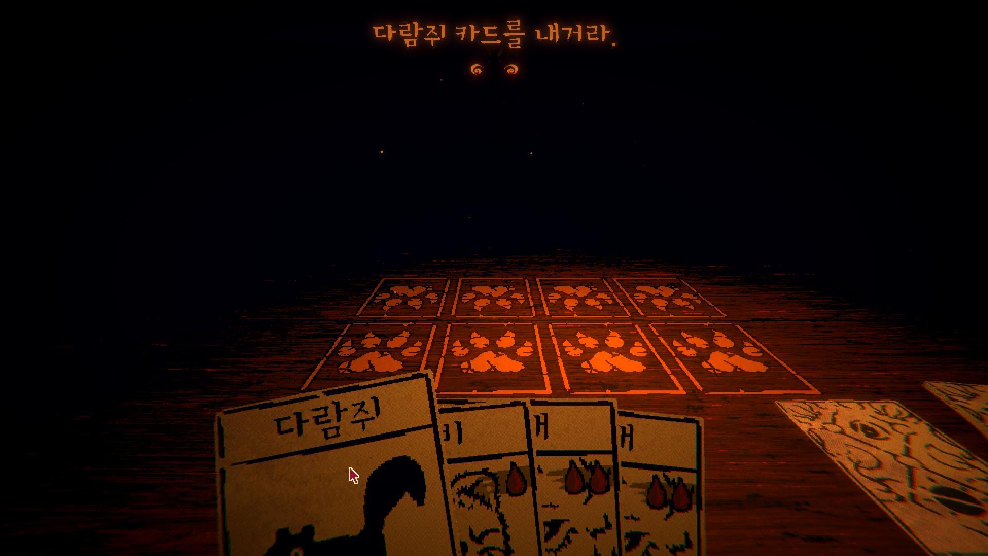 어두컴컴한 방에서 옅은 조명에 의지해 카드를 치는 기분이란.