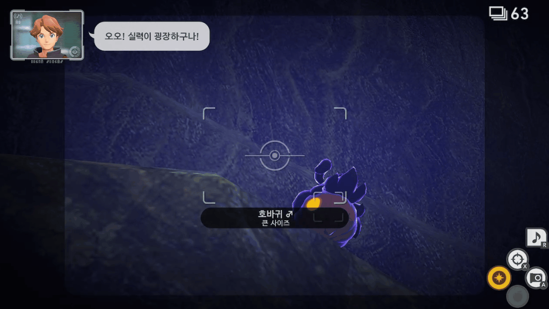 얼떨결에 포켓몬을 찍게 되는 주인공.