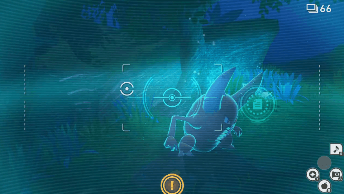 말랑 사과를 던져 포켓몬의 반응을 끌어내자.