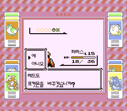 정보가 너무나도 부족한 그 시절에, 친구가 미뇽을 잡았다며 동네방네 자랑을 늘어놓았다. 쉽게 알려주지 않는 친구와 나의 줄다리기 끝에, 드디어 미뇽의 출현 장소를 알아낼 수 있었다. 어렵사리 잡은 미뇽은 육성조차 난관이었다. 이미 6번째 체육관까지 온 터라 스토리 진행에 써먹기도 애매하고, 레벨업은 무지하게 더뎠다. 아마 통신 교환으로 육성 난이도를 낮추라는 의도였던 것 같은데, 그래도 빡센 건 변하지 않는다.