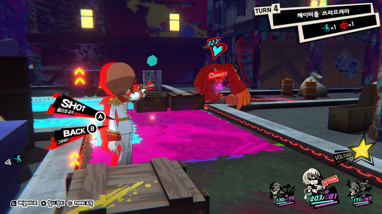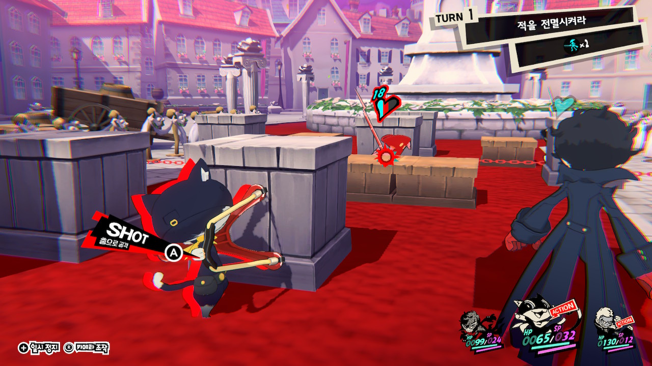 <페르소나>의 전투는 프레스 턴 시스템이 핵심이다. 약점 공격으로 상대방을 다운시킨다. 다운되면 추가 행동이 주어진다. 즉, 약점 공격 = 승리의 지름길이다. 왜 갑자기 이런 얘기를 하느냐고 생각할 수 있는데, <P5T>는 속성 공격이 사실상 무의미하기 때문이다.