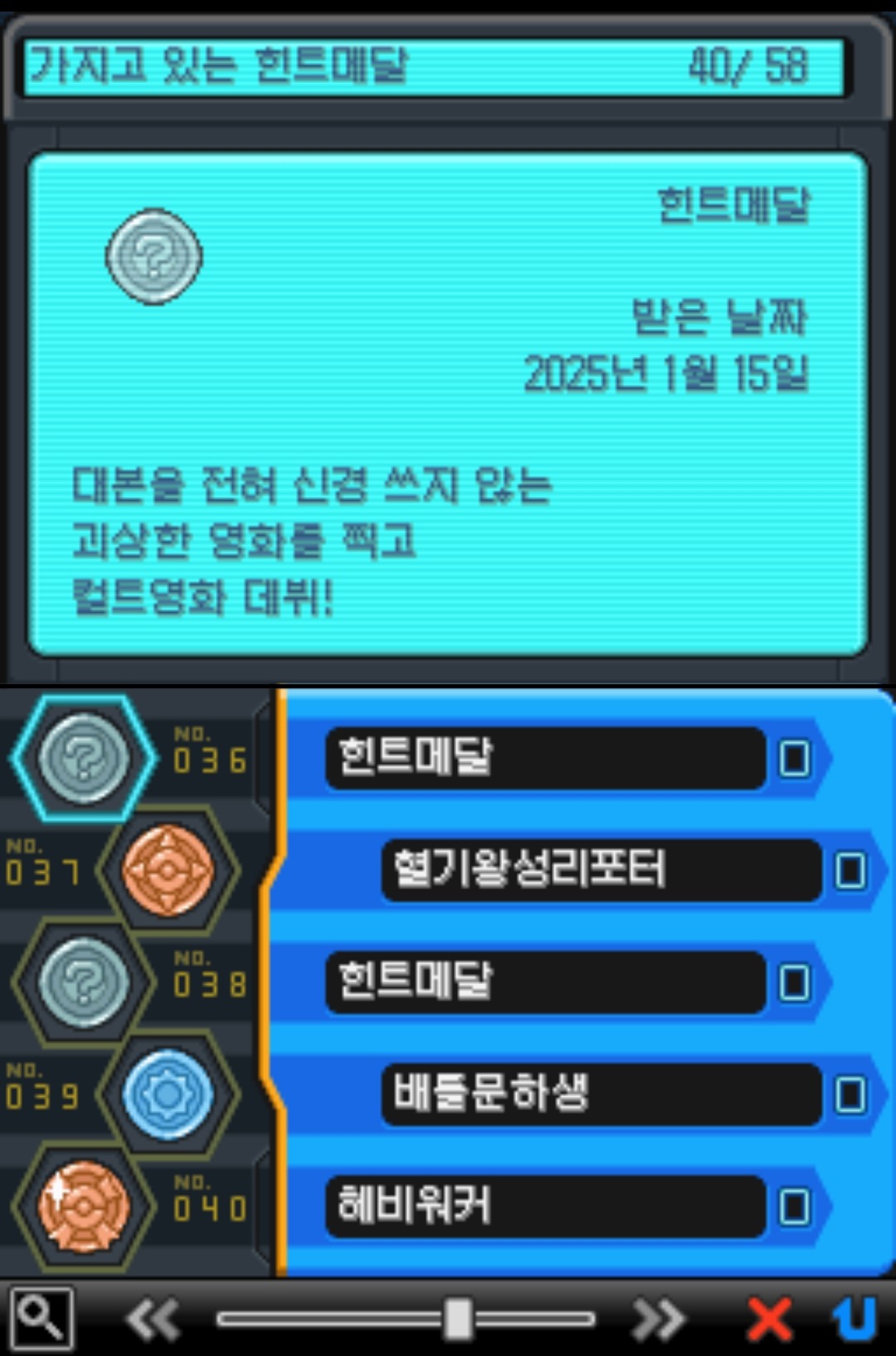 <B2W2>는 이 부분을 훌륭하게 극복했다. 각 지역별로 서식지 리스트를 제공하고, 리스트를 완성시켜 달성감을 얻는다. 처음부터 649마리 포켓몬을 전부 잡는다고 결심하면 엄두가 안 나지만, 서식지 리스트를 완성하는 것 정도는 충분히 해볼 만한 도전이 된다.