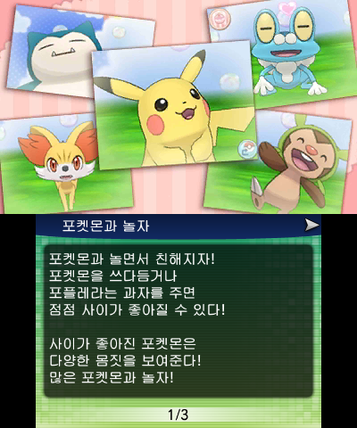 한때 포켓몬과의 교감은 뒷전으로 보였다. 그런 점에서 <포켓몬스터 피카츄>는 중요한 족적을 남겼다. 플레이어 뒤에 피카츄가 따라다니고, 친밀도에 따라 피카츄의 표정이 바뀐다. 이 작품은 '몬스터'로서의 포켓몬이 아닌, 귀엽고 친근한 내 친구 '포켓몬'을 표현한 첫 <포켓몬>이었다. 교감 콘텐츠는 알음알음 추가되다 <XY>에서 폭발하기에 이른다.