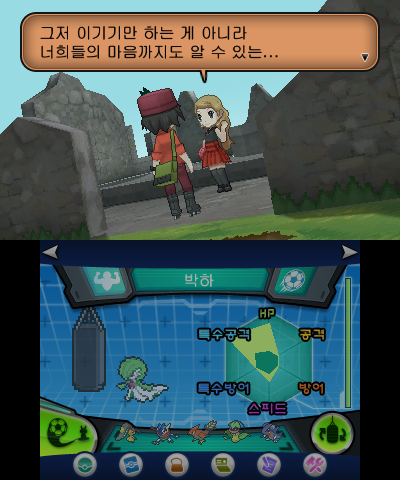 가장 체감되는 변화는 단연코 그래픽이다. 같은 해에 <라스트 오브 어스>가 나온 마당에 이게 뭔 대수냐 싶을 수도 있으나, 기기 스펙이 딸리는 닌텐도 휴대기기에서 나왔다는 점, 2D의 상징처럼 보였던 <포켓몬>이 3D로 나왔다는 점, 포켓몬의 3D 모션이 상상 이상으로 자연스러웠다는 점 등이 놀라움을 자아냈다.