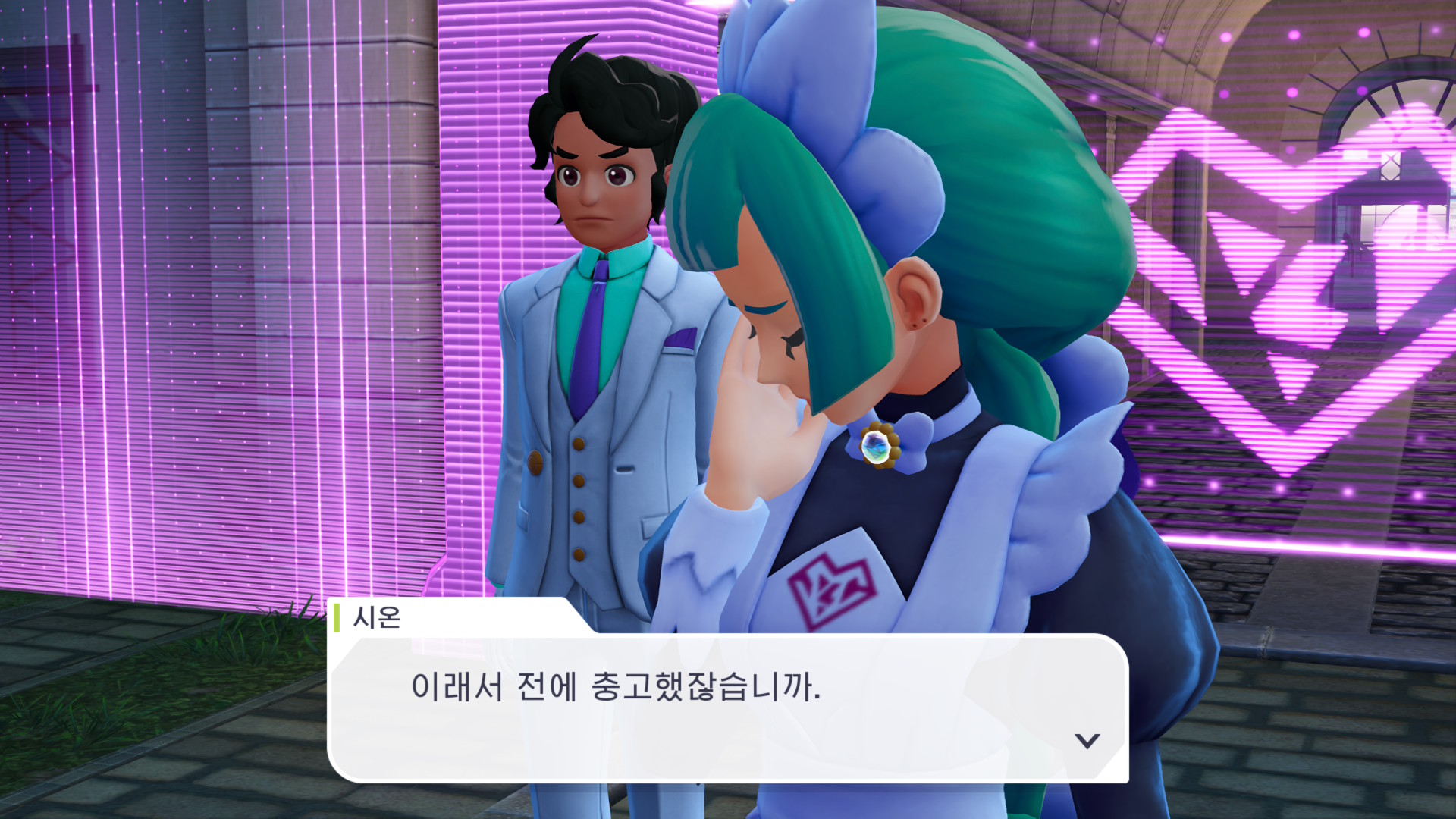 <ZA>의 내부는 어떨까. 실은 한계가 있다. 파리의 다층적 매력을 전연령이 알 수 있는 형태로 말하는 건 쉽지 않은 문제다. <ZA>는 말한다. "우리는 포켓몬과 함께 산다." "미르시티는 살아 있다." "아름다움에는 비용이 있다." 이건 <BW> 이후 가장 적극적인 문제 의식이다. 그런데 왜 메시지는 허울 뿐인가. <BW>와 비교하면 명백하다. 질문이 캐릭터의 말로 나오지 않고, 플롯의 갈등으로 수렴하지 않는다. 그때 플레이어는 느낀다. "뭔가 말하려는 것 같은데... 정작 아무도 책임지고 말하는 사람이 없다."