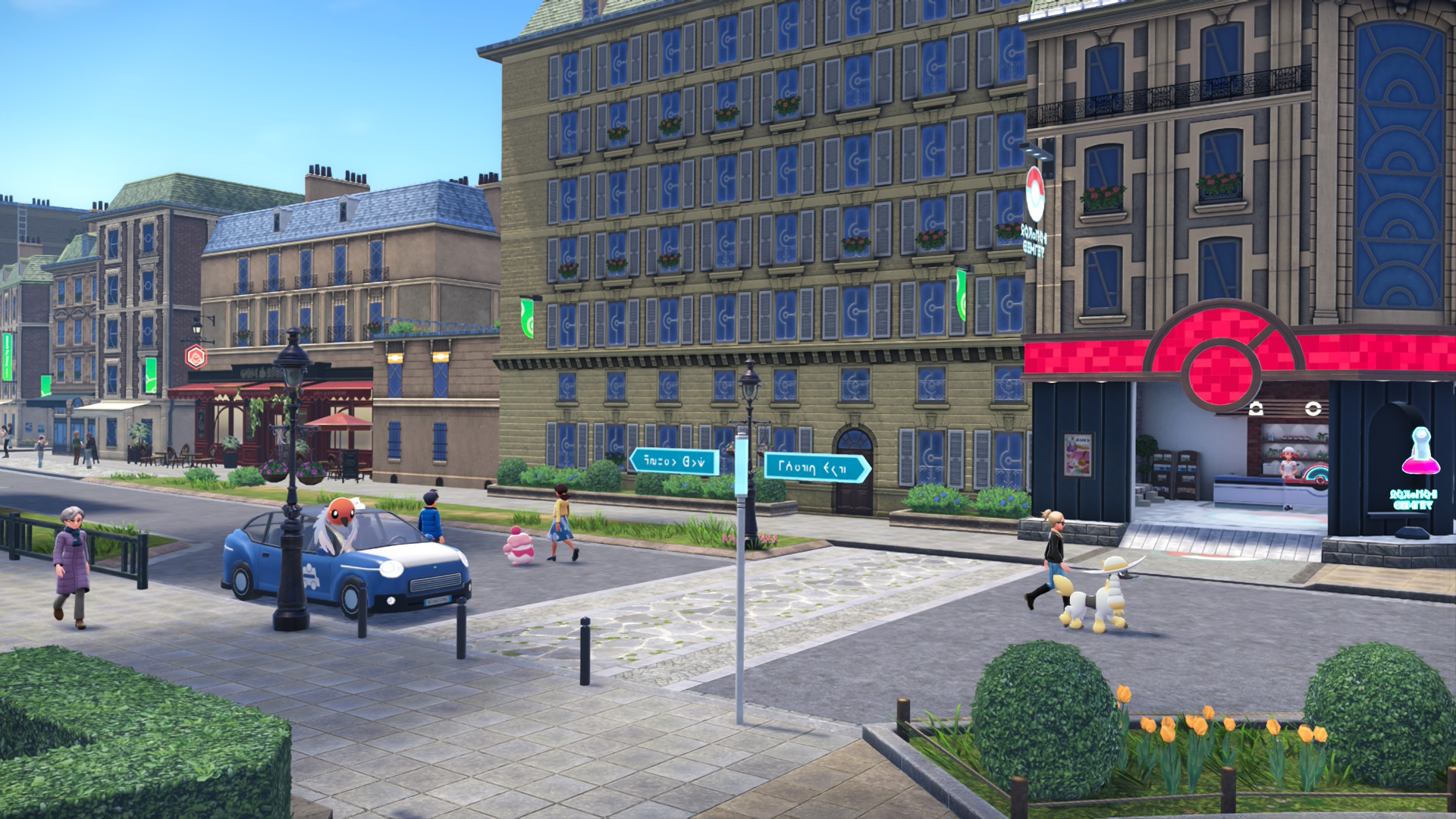 <ZA>의 맵 디자인 철학은 전작 <아르세우스>와 완벽하게 상충된다. <아르세우스>가 오픈월드를 목표로 수평적 탐험에 초점을 둔다면, <ZA>는 미르시티라는 한정된 무대에서 수직과 밀도를 논한다. 건물 옥상을 뛰어넘는 경험, 골목길을 뛰어다니는 경험 등이 대표적인 예시다. 따라서 <아르세우스>는 광활함을, <ZA>는 밀집된 경험을 제공해야 했다.
