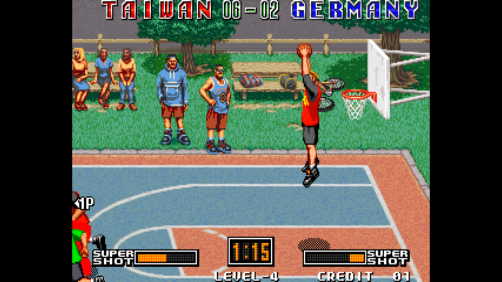 가장 치명적인 약점은 방어 상황이다. 농구 게임에서 블로킹은 방어의 꽃이다. 골을 넣었을 때보다, 블로킹에 성공할 때가 더 기분 좋은 일이다. 방어는 심리전을 이겨야 성립하기 때문. 이 게임은 블로킹 타이밍을 빡빡하게 잡아, 상대 덩크를 보고 블로킹을 눌렀는데 미동조차 안 할 때가 많다. 잠시 <덩크 드림, 1995>의 방어 상황을 살펴보자.