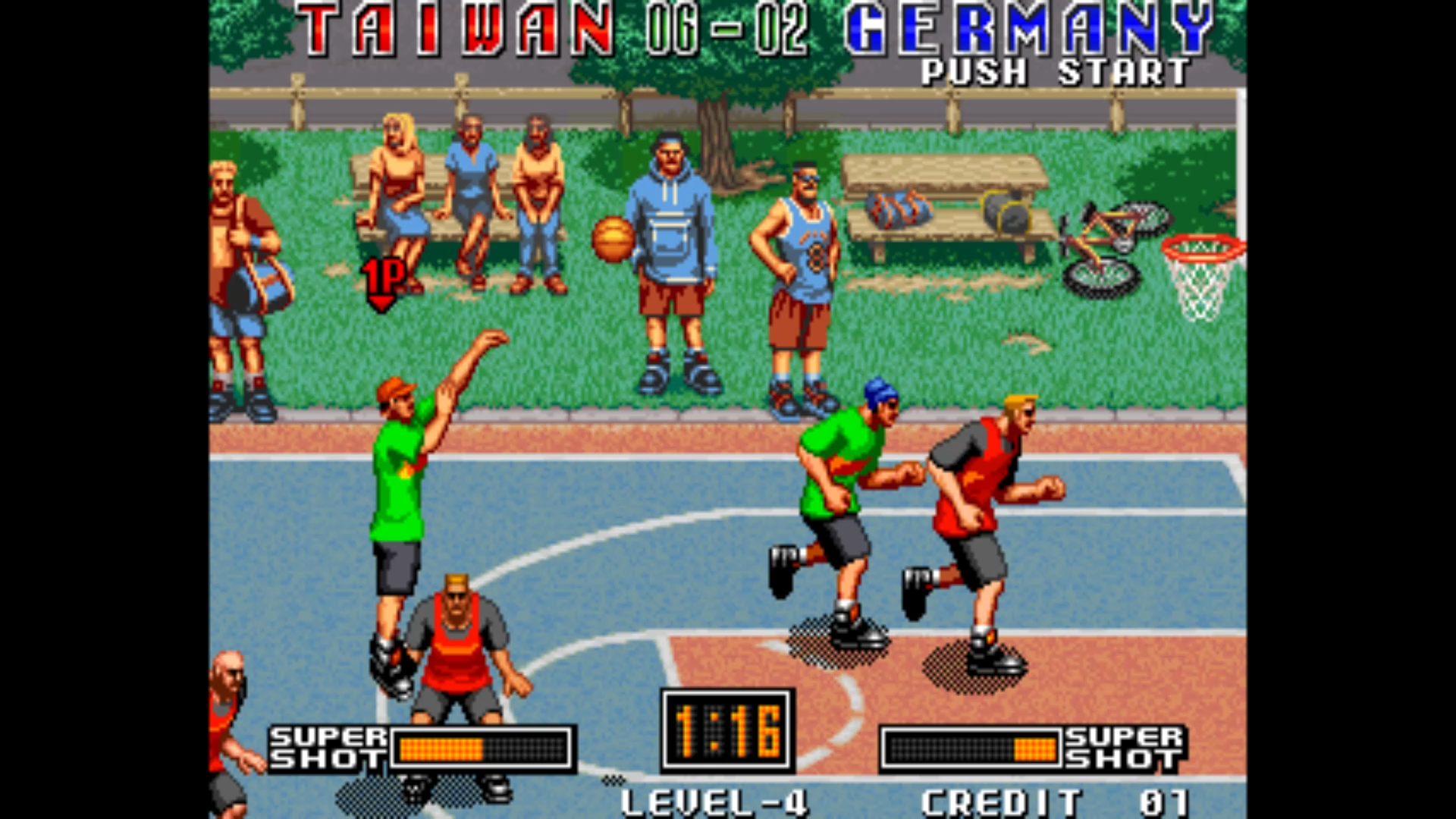 테니스는 본질적으로 상호작용이 강한 스포츠다. 이러한 특징은 대전 게임, 특히 원코인 투 플레이어 게임에서 빛을 발한다. <스매시 스타즈>는 밸런스형 캐릭터가 적고, 스탯이 한쪽에 몰빵된 캐릭터가 많다. 따라서 캐릭터 별 체감이 큰 편. 버튼은 A, B, C 총 세 가지이며 각각 강공격, 약공격, 발리에 해당한다. 단순히 공의 세기를 조절하는 것만으로 다양한 심리전이 성립해, 가장 대전 게임으로 추천하고 싶은 녀석.
