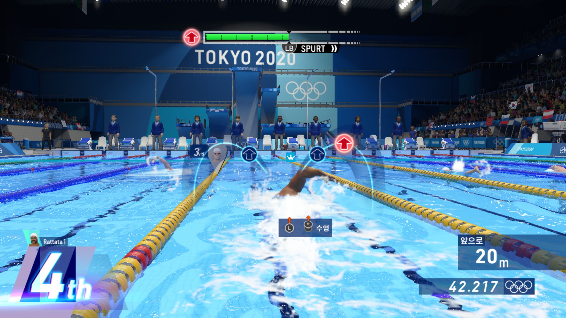 엑스박스 컨트롤러는 좌우 아날로그 스틱 위치가 서로 마주보고 있지 않은 구조다. 듀얼쇼크라면 모를까, 엑박 패드를 쓰는 사람이 어떻게 수영에서 좋은 조작감을 느끼겠는가? <2020 도쿄 올림픽>은 PS4 뿐만 아니라 스위치, 엑스박스로도 발매되었는데, 스위치 컨트롤러(조이콘, 프로콘) 역시 비대칭이다. 패드마다 느낌이 전혀 다른데 왜 이렇게 세팅한 걸까? 해결법은 간단하다. 디폴트 키를 LB, RB로 해놓거나, 게임 내에서 몇 가지 프리셋을 제공하면 됐다.