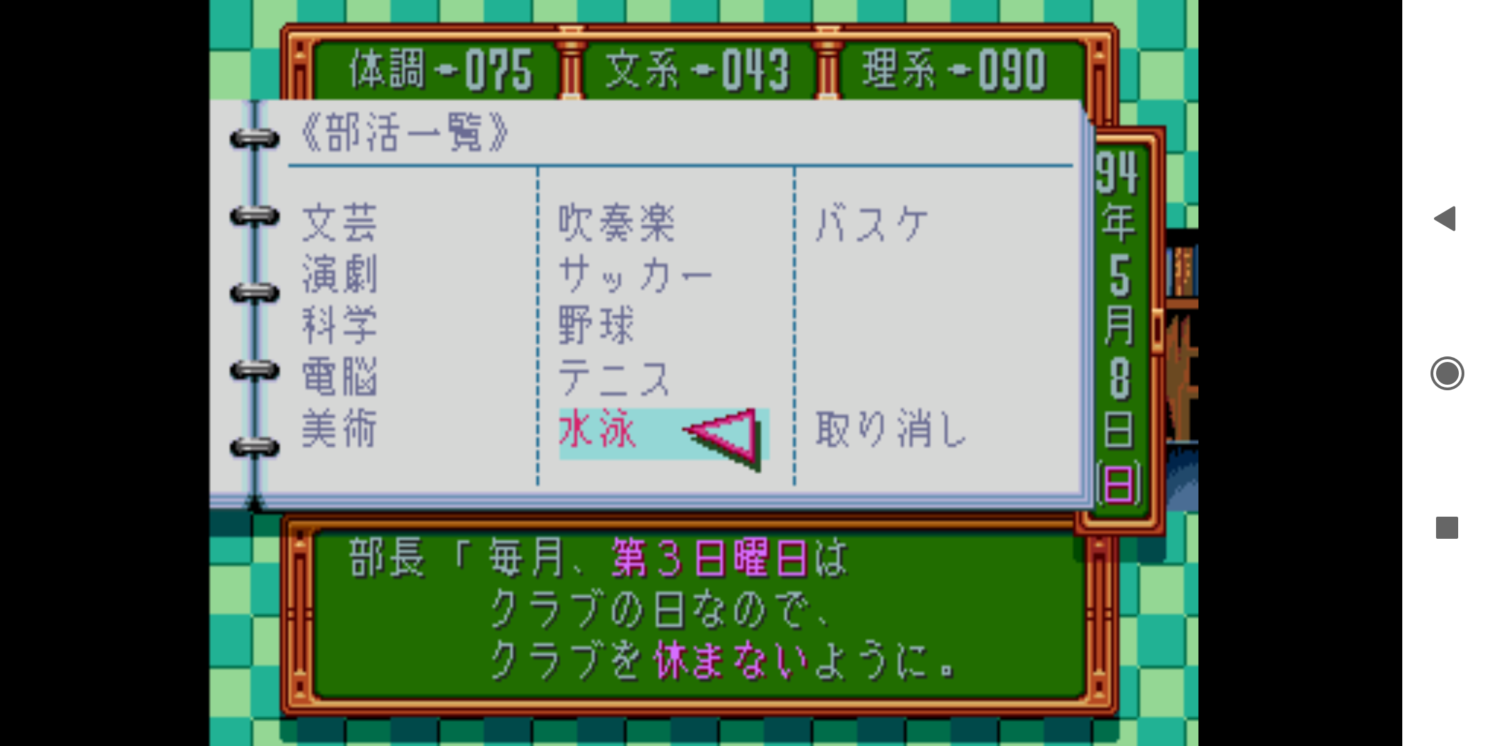 미소녀 연애 시뮬레이션, 통칭 미연시라는 표현은 이상합니다. 흔히 미연시라고 부르는 게임 중에 시뮬레이션적 성격이 있는 게임은 매우 적습니다. 대부분 일러스트와 보이스, 글과 선택지만 존재할 뿐이죠. 그렇다면 '미연시'에 가장 잘 부합하는 작품은 뭘까요? <도키메키 메모리얼>이 바로 그런 게임입니다. 정해진 이야기를 따라 흘러가는 것이 아닌, 플레이어가 주도적으로 데이트 약속, 날짜, 장소, 대상을 선택합니다. 주인공의 스테이터스를 자유롭게 성장시켜, 히로인 공략의 키포인트로 사용하는 게임이죠.