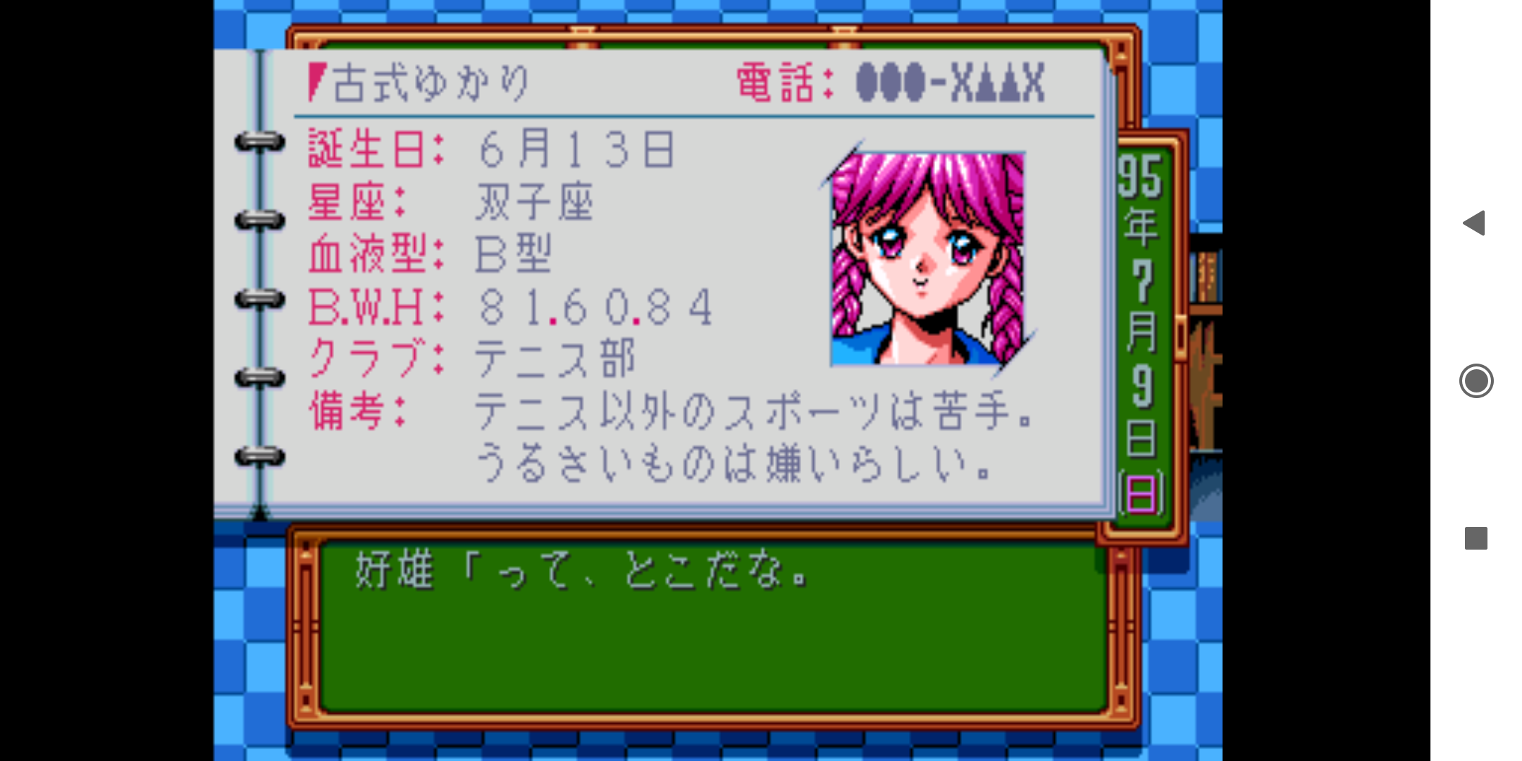 데이트를 신청하려면 상대방의 전화번호를 알아야 한다. 전화번호가 없다면 여성학 박사 요시오에게 물어보면 된다. 번호를 알려준 적 없는 남학생이 우리집으로 전화를? 히로인 입장에서 생각하니 소름이 돋는다.