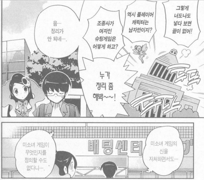 케이마는 미소녀 게임이 무엇인지 정의하는데 어려움을 겪는다.